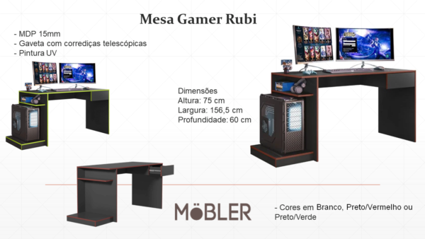 Com um design moderno e elegante, a Mesa de Computador Rubi é perfeita para quem busca um móvel funcional e cheio de personalidade para o ambiente. A gaveta oferece espaço adicional para organizar seus materiais de escritório, mantendo o espaço sempre arrumado e livre de bagunça.