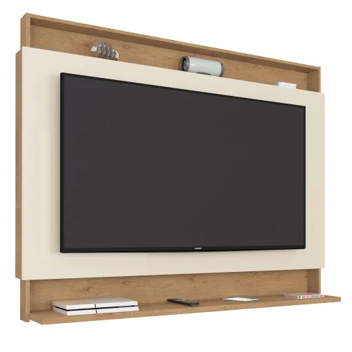 E não é só a TV que vai ficar em destaque, viu? Este painel também conta com prateleiras que vão te ajudar a organizar todos os seus acessórios eletrônicos, livros, porta-retratos e o que mais você quiser! Tudo isso enquanto dá um toque especial na decoração do ambiente.