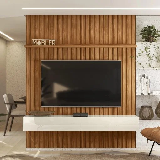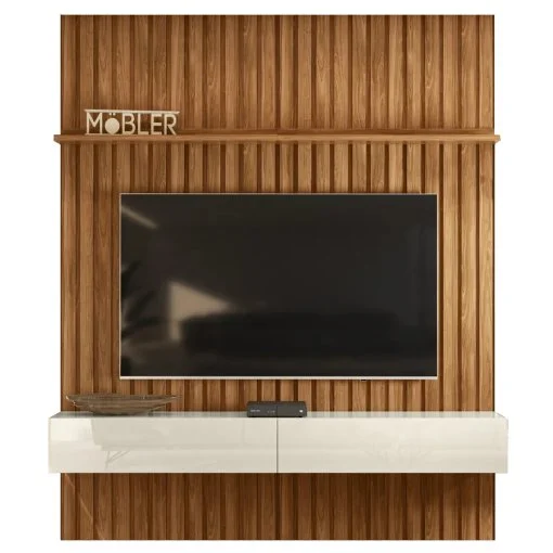 Procurando um painel de TV que seja tão bonito e versátil quanto você? O Painel Project 220cm para TV Até 75 Polegadas Ripado 2 Gavetas Mobler Cinamomo Mel Off White é a escolha perfeita para dar um toque especial à sua sala de estar. Fabricado pela  marca Mobler, este painel ripado vai adicionar um charme único ao seu espaço.