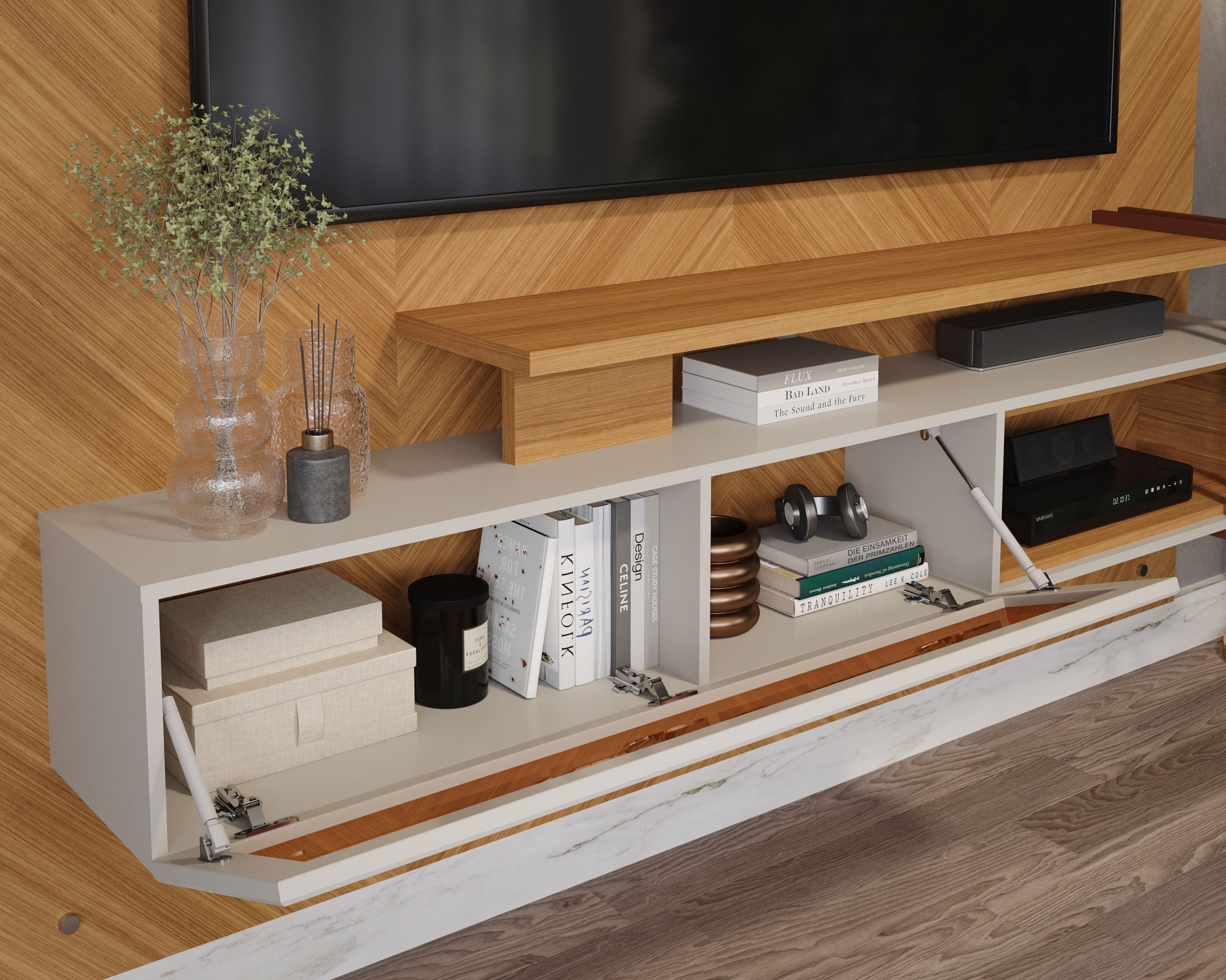 100% MDF, Pintura epóxi, Porta Basculante com vidro reflecta, TV até 65