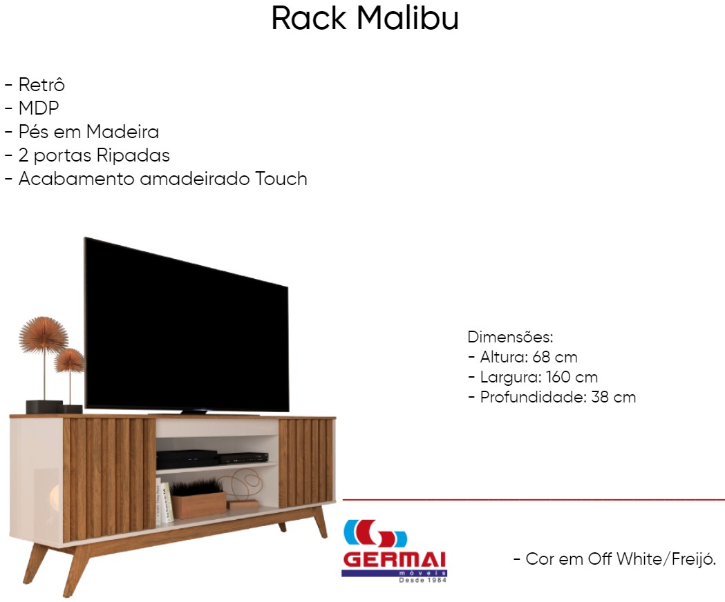 | Material | – MDP – Pés em Madeira – 2 portas Ripadas – Acabamento amadeirado Touch |